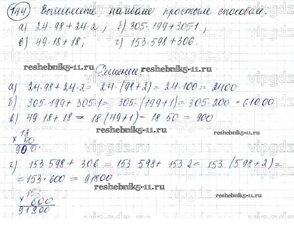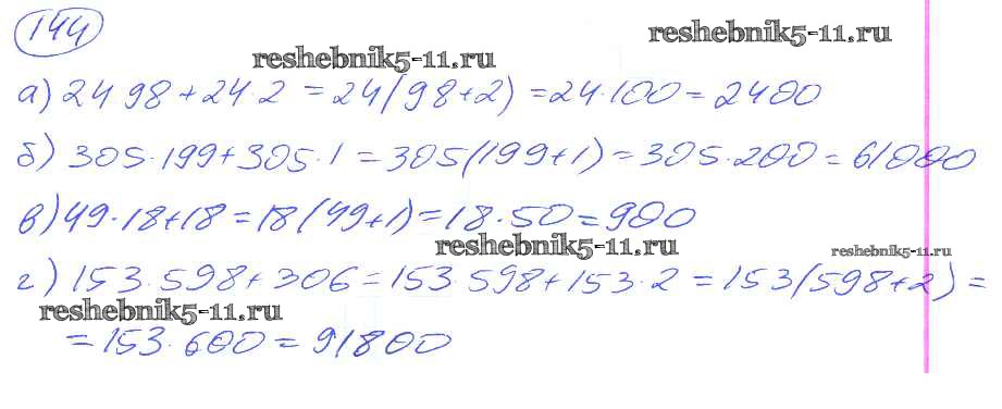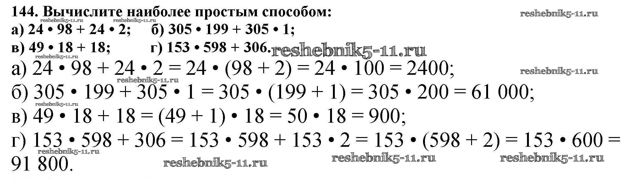 Готовая домашняя работа с ответами по Математике за 5 класс Никольский, Потапов, Решетников, Шевкин Учебник МГУ - школе Просвещение 2016 ФГОС - Упражнения 144