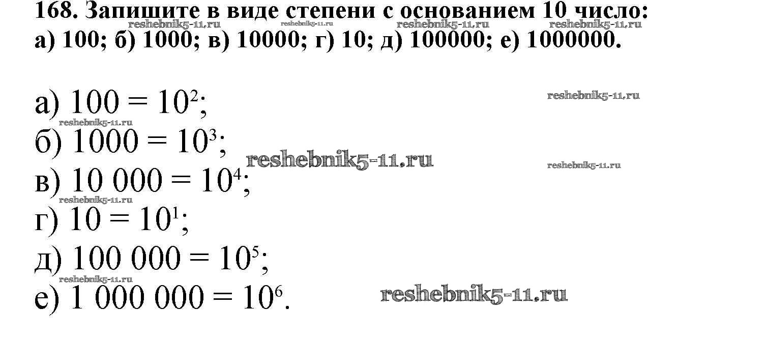 Готовая домашняя работа с ответами по Математике за 5 класс Никольский, Потапов, Решетников, Шевкин Учебник МГУ - школе Просвещение 2016 ФГОС - Упражнения 168