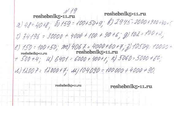 Готовая домашняя работа с ответами по Математике за 5 класс Никольский, Потапов, Решетников, Шевкин Учебник МГУ - школе Просвещение 2016 ФГОС - Упражнения 19