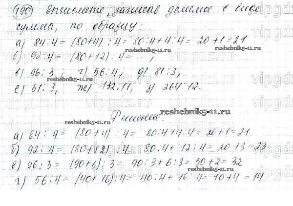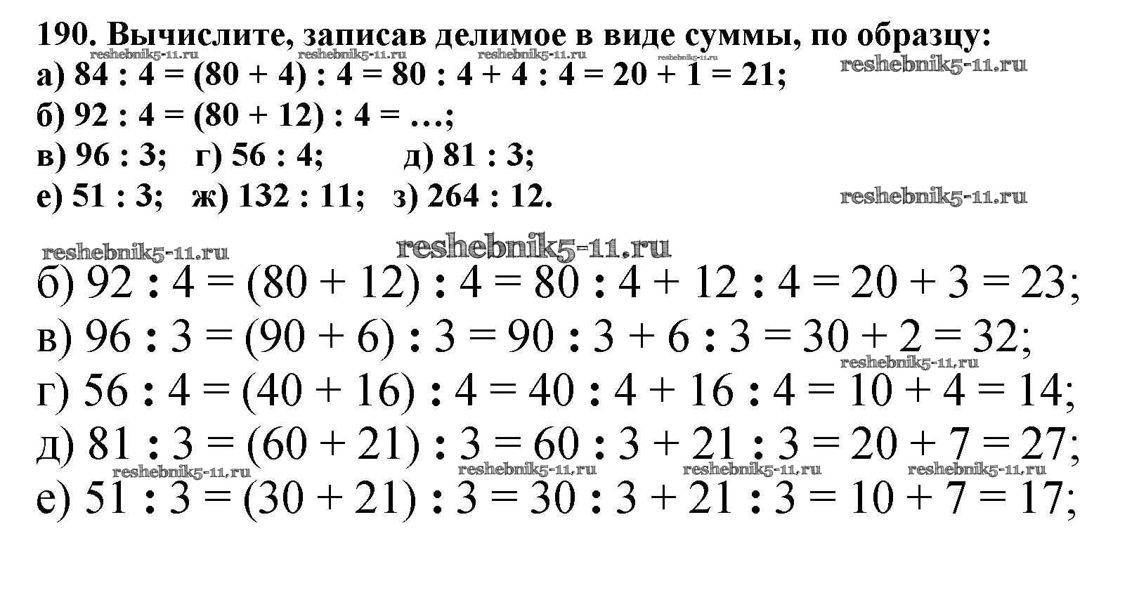 Готовая домашняя работа с ответами по Математике за 5 класс Никольский, Потапов, Решетников, Шевкин Учебник МГУ - школе Просвещение 2016 ФГОС - Упражнения 190