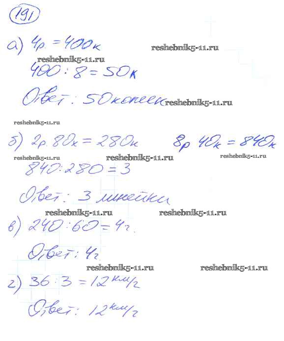 Готовая домашняя работа с ответами по Математике за 5 класс Никольский, Потапов, Решетников, Шевкин Учебник МГУ - школе Просвещение 2016 ФГОС - Упражнения 191