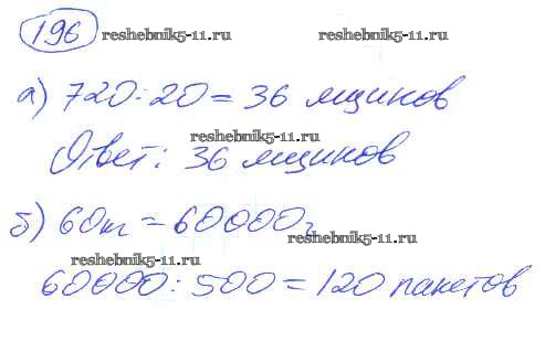 Готовая домашняя работа с ответами по Математике за 5 класс Никольский, Потапов, Решетников, Шевкин Учебник МГУ - школе Просвещение 2016 ФГОС - Упражнения 196