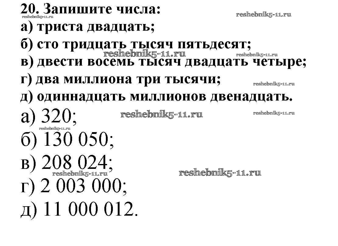 Готовая домашняя работа с ответами по Математике за 5 класс Никольский, Потапов, Решетников, Шевкин Учебник МГУ - школе Просвещение 2016 ФГОС - Упражнения 20