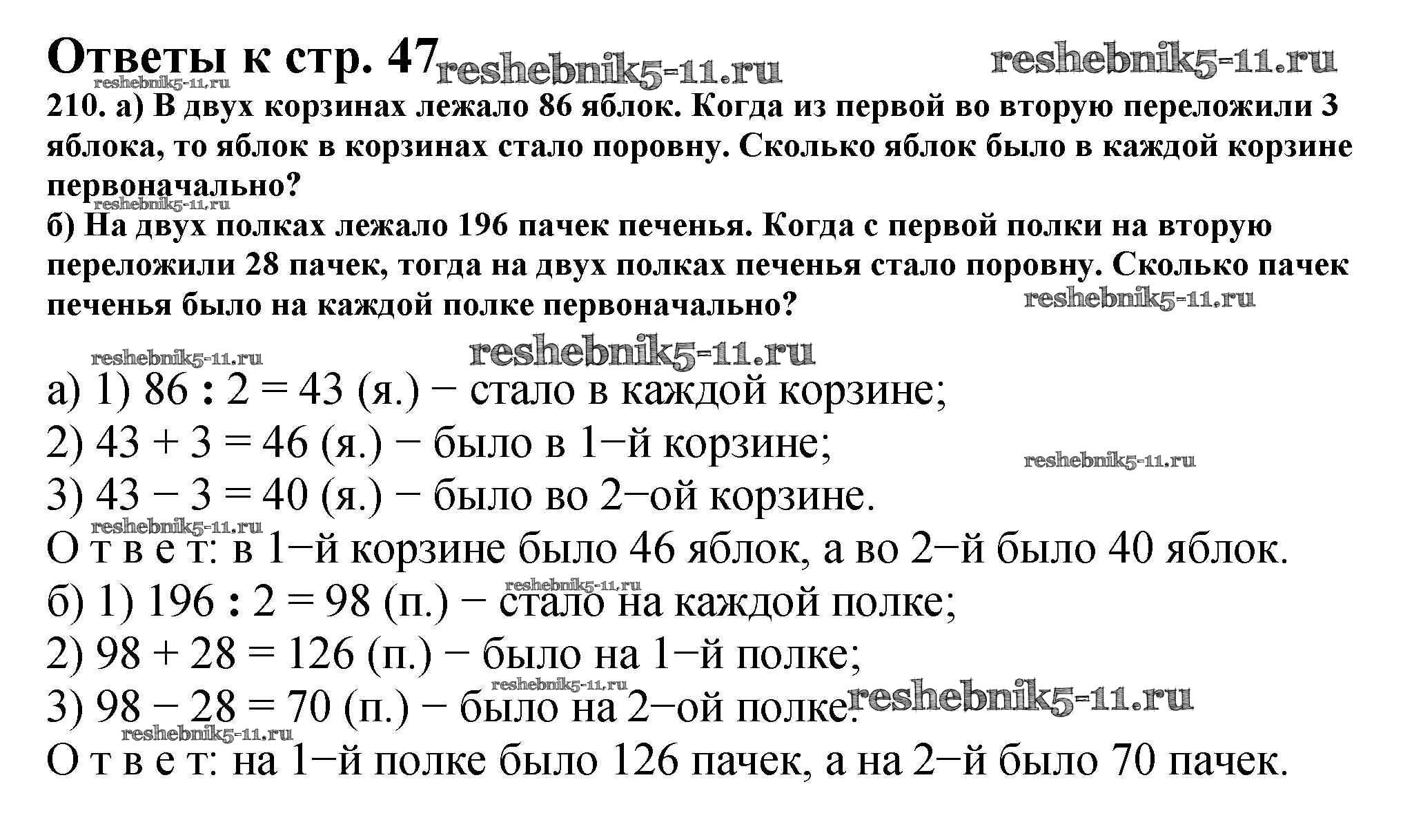 Готовая домашняя работа с ответами по Математике за 5 класс Никольский, Потапов, Решетников, Шевкин Учебник МГУ - школе Просвещение 2016 ФГОС - Упражнения 210