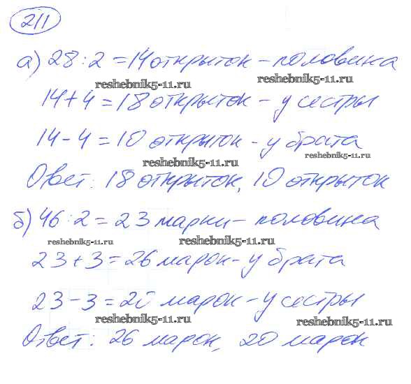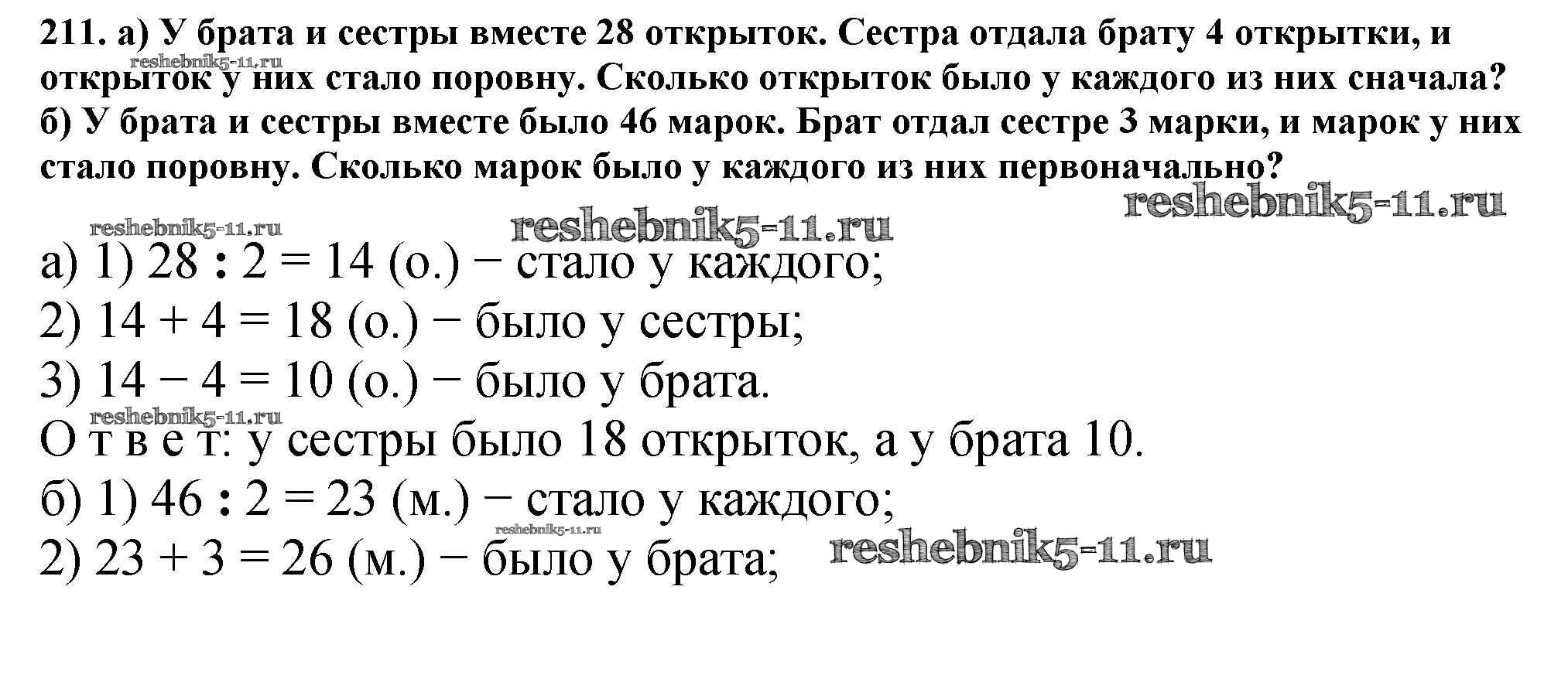 Готовая домашняя работа с ответами по Математике за 5 класс Никольский, Потапов, Решетников, Шевкин Учебник МГУ - школе Просвещение 2016 ФГОС - Упражнения 211