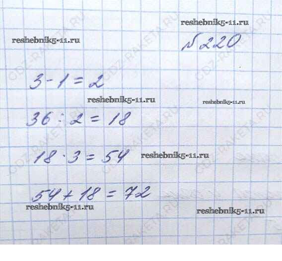 Готовая домашняя работа с ответами по Математике за 5 класс Никольский, Потапов, Решетников, Шевкин Учебник МГУ - школе Просвещение 2016 ФГОС - Упражнения 220