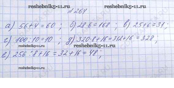 Готовая домашняя работа с ответами по Математике за 5 класс Никольский, Потапов, Решетников, Шевкин Учебник МГУ - школе Просвещение 2016 ФГОС - Упражнения 264