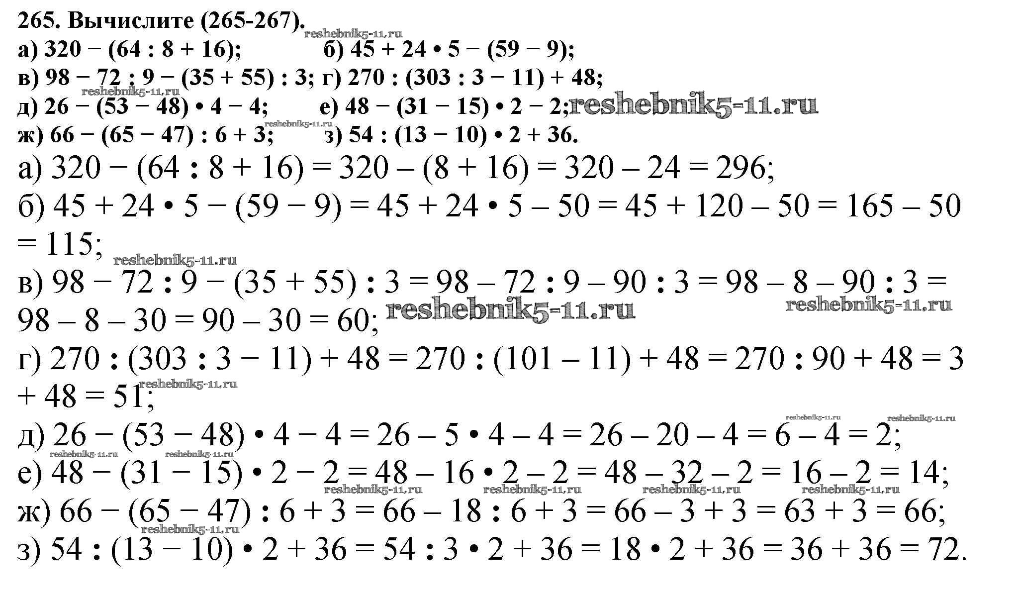 Готовая домашняя работа с ответами по Математике за 5 класс Никольский, Потапов, Решетников, Шевкин Учебник МГУ - школе Просвещение 2016 ФГОС - Упражнения 265