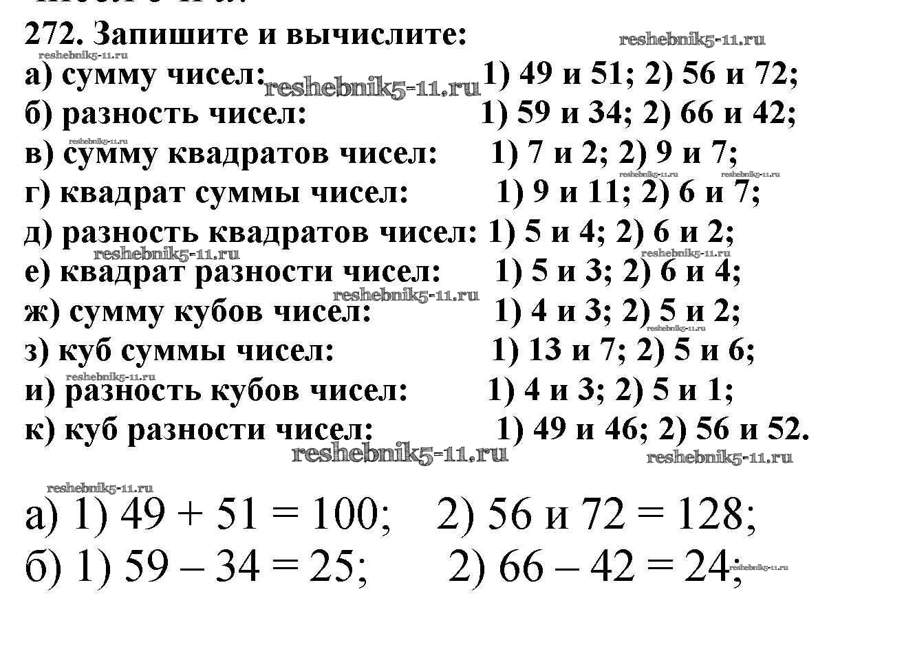 Готовая домашняя работа с ответами по Математике за 5 класс Никольский, Потапов, Решетников, Шевкин Учебник МГУ - школе Просвещение 2016 ФГОС - Упражнения 272
