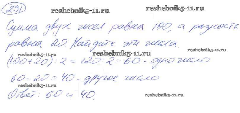 Готовая домашняя работа с ответами по Математике за 5 класс Никольский, Потапов, Решетников, Шевкин Учебник МГУ - школе Просвещение 2016 ФГОС - Упражнения 291