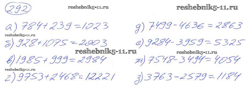 Готовая домашняя работа с ответами по Математике за 5 класс Никольский, Потапов, Решетников, Шевкин Учебник МГУ - школе Просвещение 2016 ФГОС - Упражнения 292