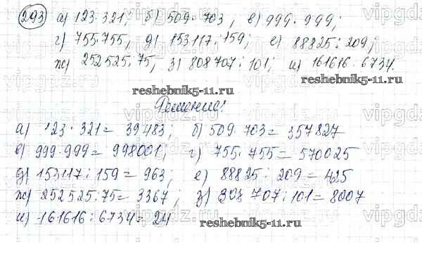 Готовая домашняя работа с ответами по Математике за 5 класс Никольский, Потапов, Решетников, Шевкин Учебник МГУ - школе Просвещение 2016 ФГОС - Упражнения 293