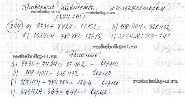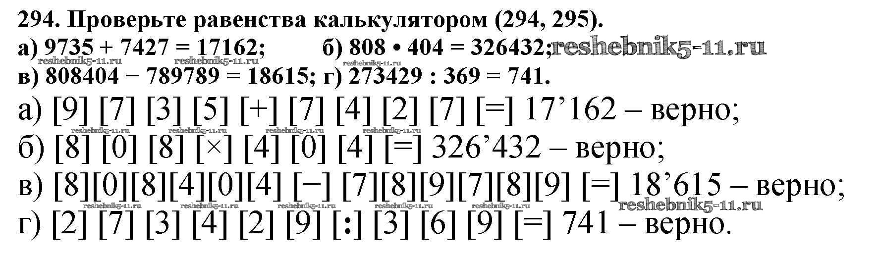 Готовая домашняя работа с ответами по Математике за 5 класс Никольский, Потапов, Решетников, Шевкин Учебник МГУ - школе Просвещение 2016 ФГОС - Упражнения 294