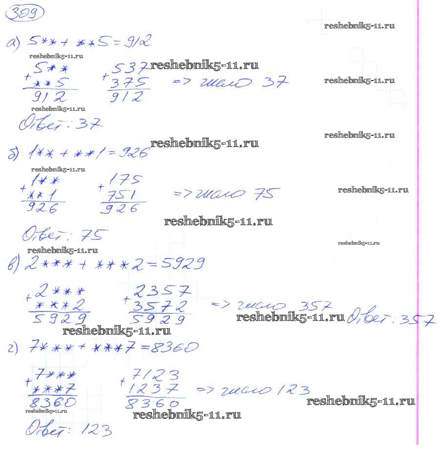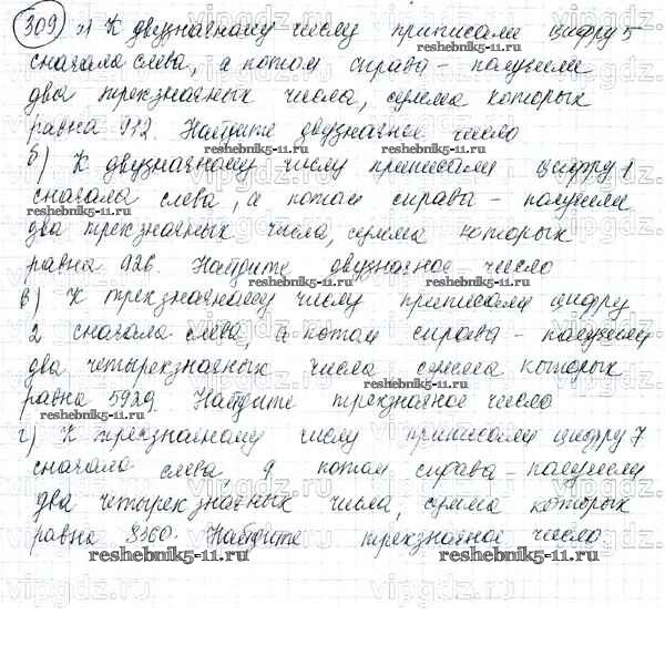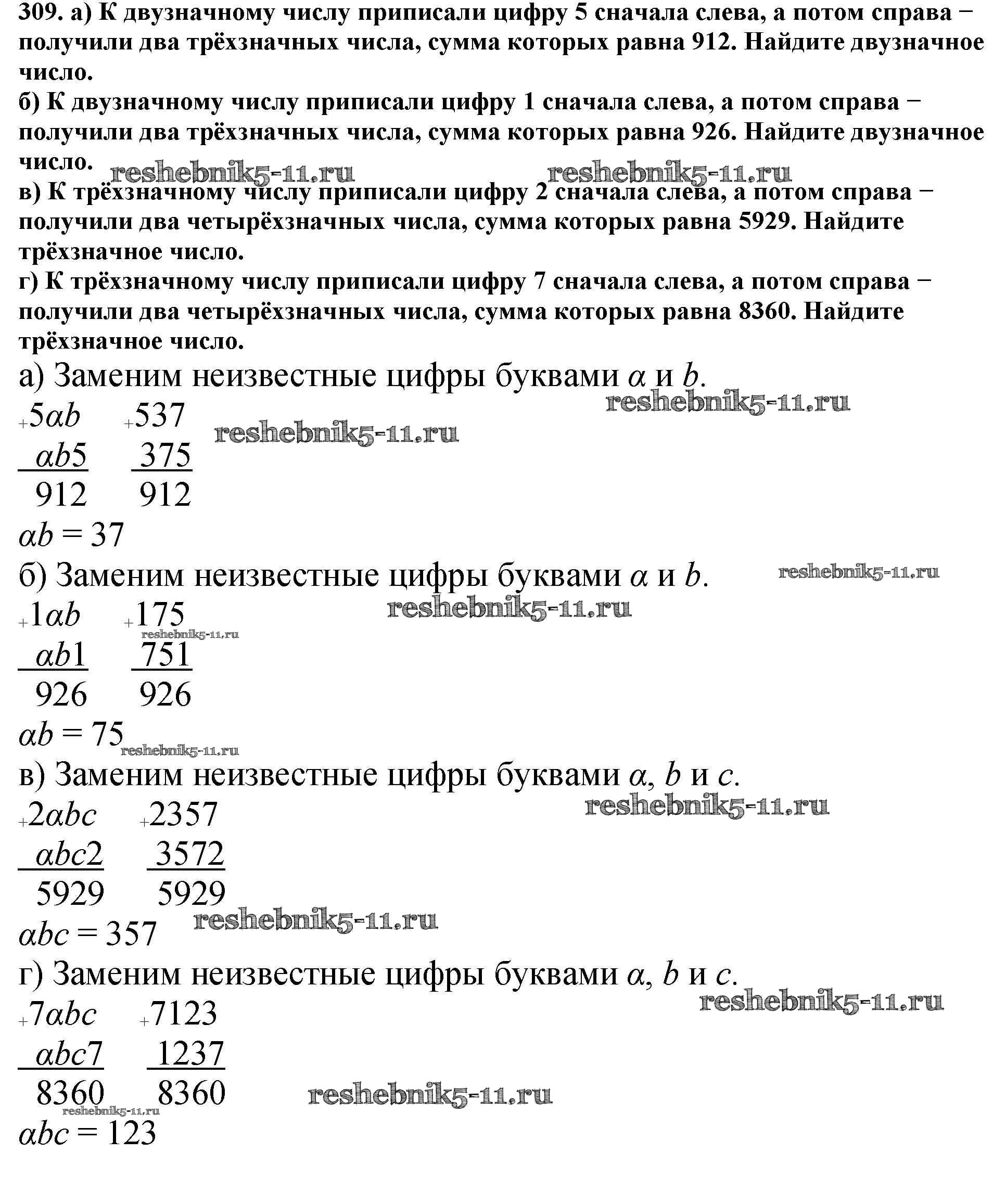 Готовая домашняя работа с ответами по Математике за 5 класс Никольский, Потапов, Решетников, Шевкин Учебник МГУ - школе Просвещение 2016 ФГОС - Упражнения 309