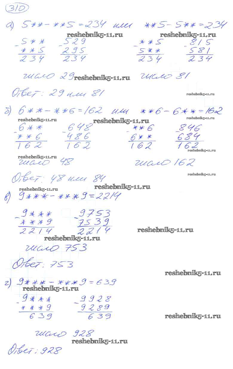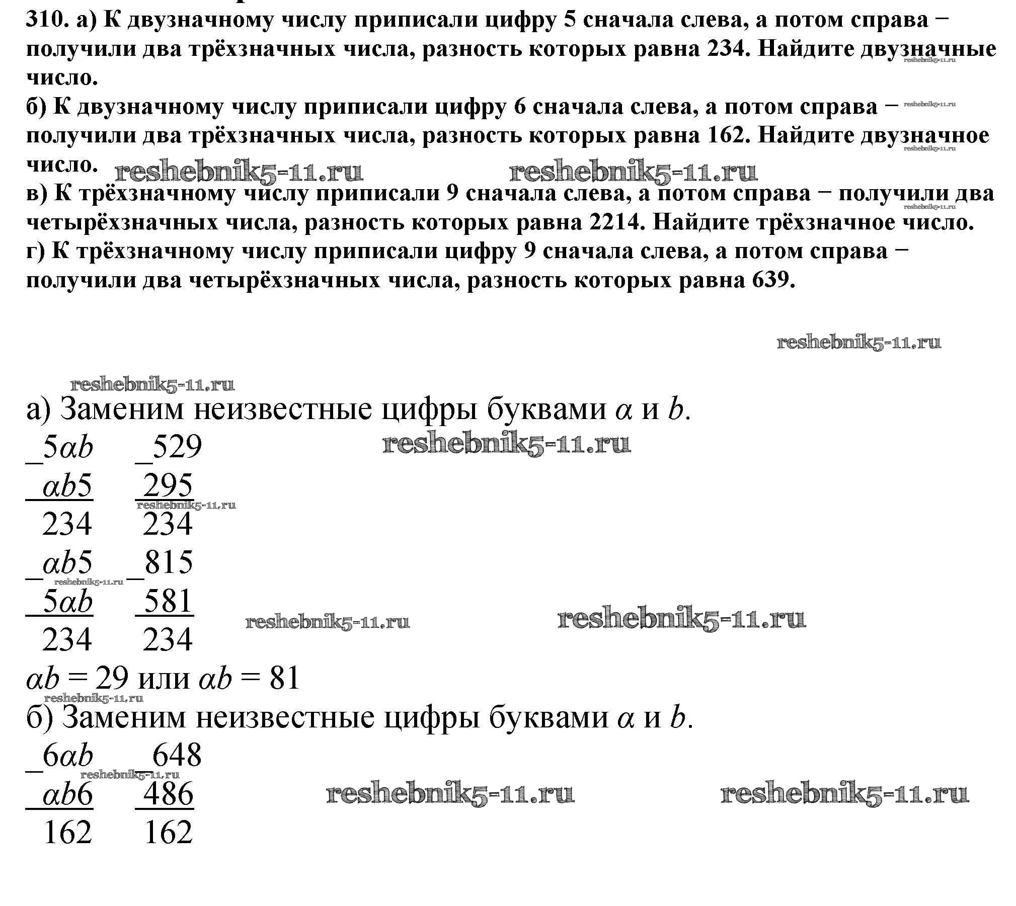 Готовая домашняя работа с ответами по Математике за 5 класс Никольский, Потапов, Решетников, Шевкин Учебник МГУ - школе Просвещение 2016 ФГОС - Упражнения 310