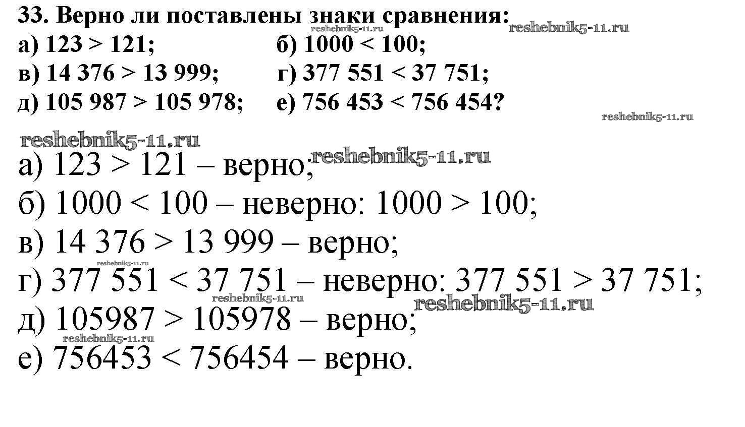 Готовая домашняя работа с ответами по Математике за 5 класс Никольский, Потапов, Решетников, Шевкин Учебник МГУ - школе Просвещение 2016 ФГОС - Упражнения 33