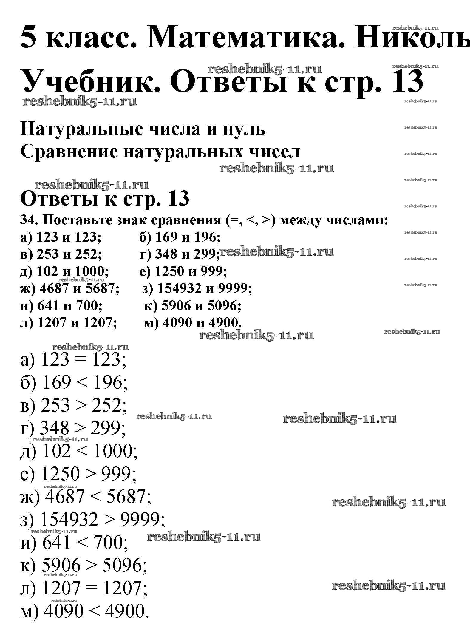 Готовая домашняя работа с ответами по Математике за 5 класс Никольский, Потапов, Решетников, Шевкин Учебник МГУ - школе Просвещение 2016 ФГОС - Упражнения 34