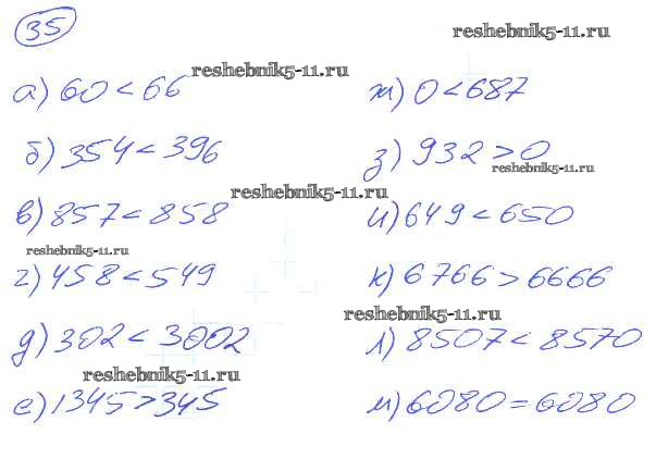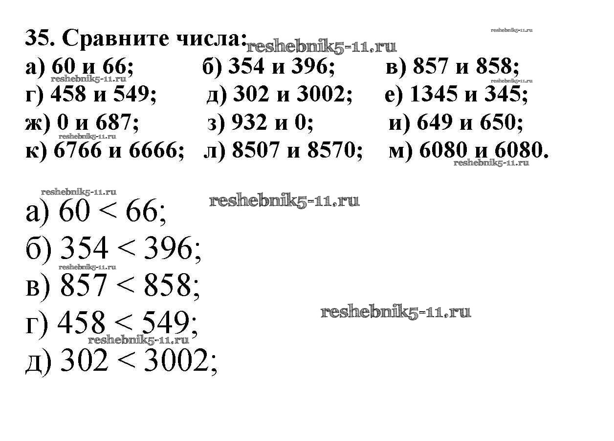 Готовая домашняя работа с ответами по Математике за 5 класс Никольский, Потапов, Решетников, Шевкин Учебник МГУ - школе Просвещение 2016 ФГОС - Упражнения 35