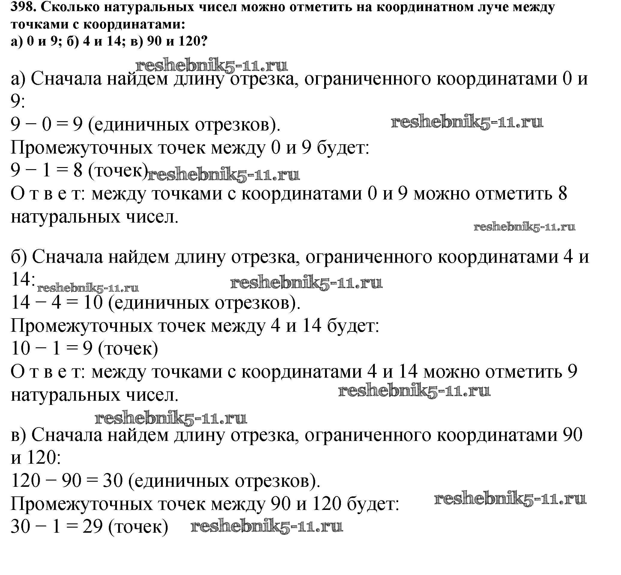 Готовая домашняя работа с ответами по Математике за 5 класс Никольский, Потапов, Решетников, Шевкин Учебник МГУ - школе Просвещение 2016 ФГОС - Упражнения 398