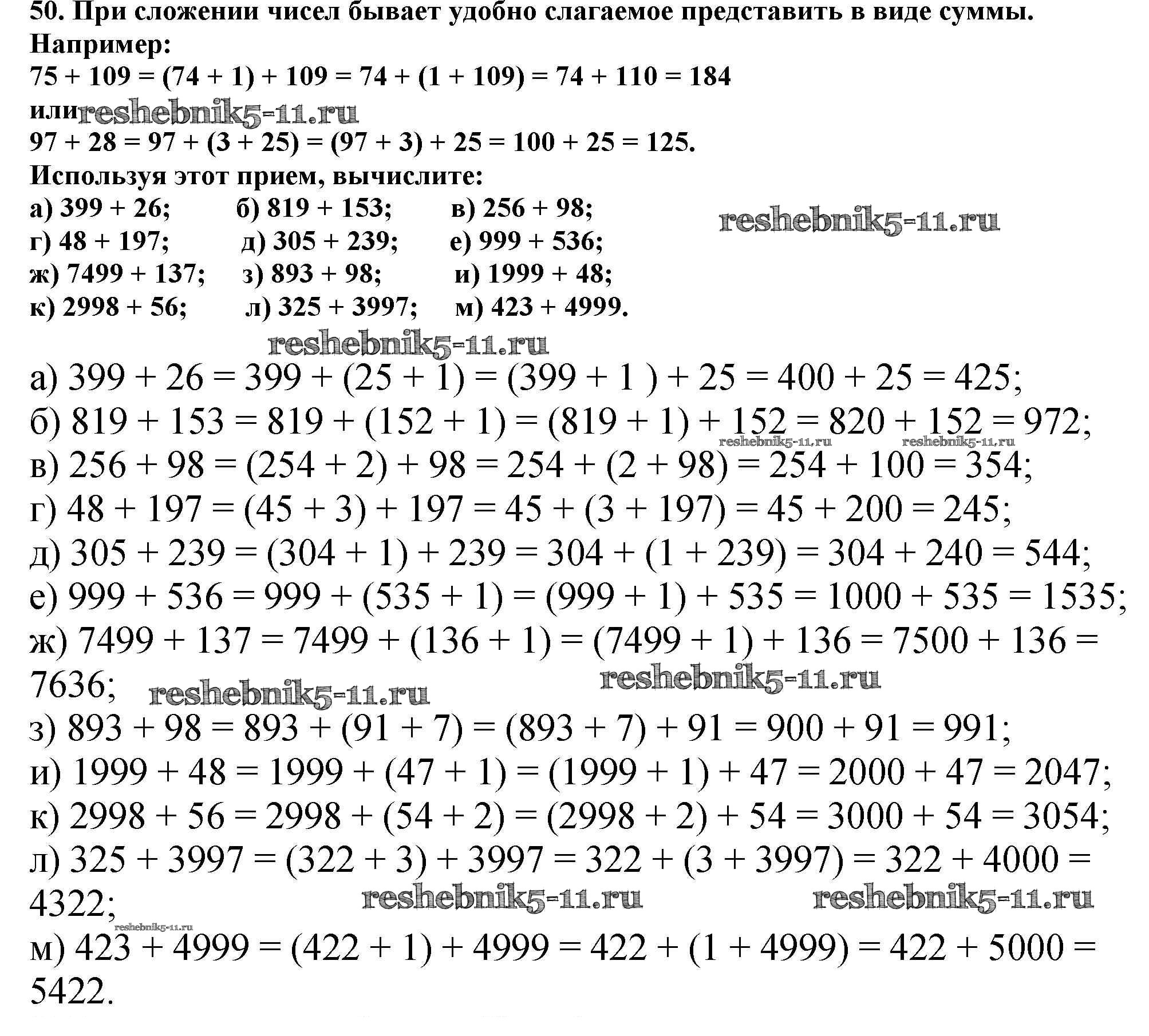 Готовая домашняя работа с ответами по Математике за 5 класс Никольский, Потапов, Решетников, Шевкин Учебник МГУ - школе Просвещение 2016 ФГОС - Упражнения 50
