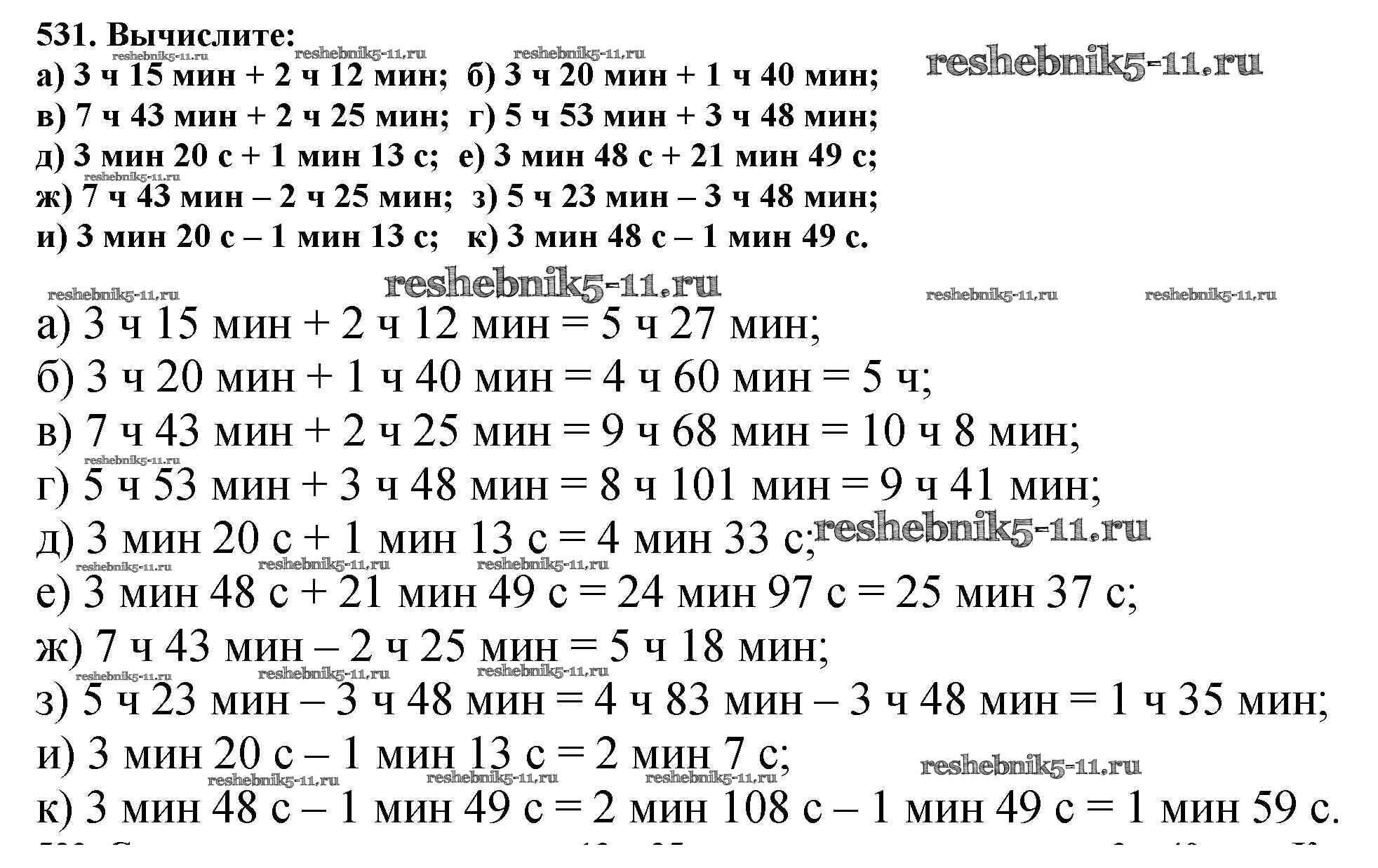 Готовая домашняя работа с ответами по Математике за 5 класс Никольский, Потапов, Решетников, Шевкин Учебник МГУ - школе Просвещение 2016 ФГОС - Упражнения 531