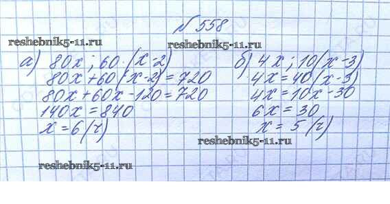 Готовая домашняя работа с ответами по Математике за 5 класс Никольский, Потапов, Решетников, Шевкин Учебник МГУ - школе Просвещение 2016 ФГОС - Упражнения 558