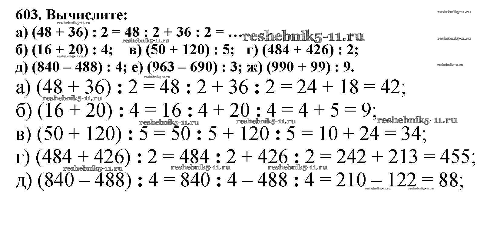 Готовая домашняя работа с ответами по Математике за 5 класс Никольский, Потапов, Решетников, Шевкин Учебник МГУ - школе Просвещение 2016 ФГОС - Упражнения 603