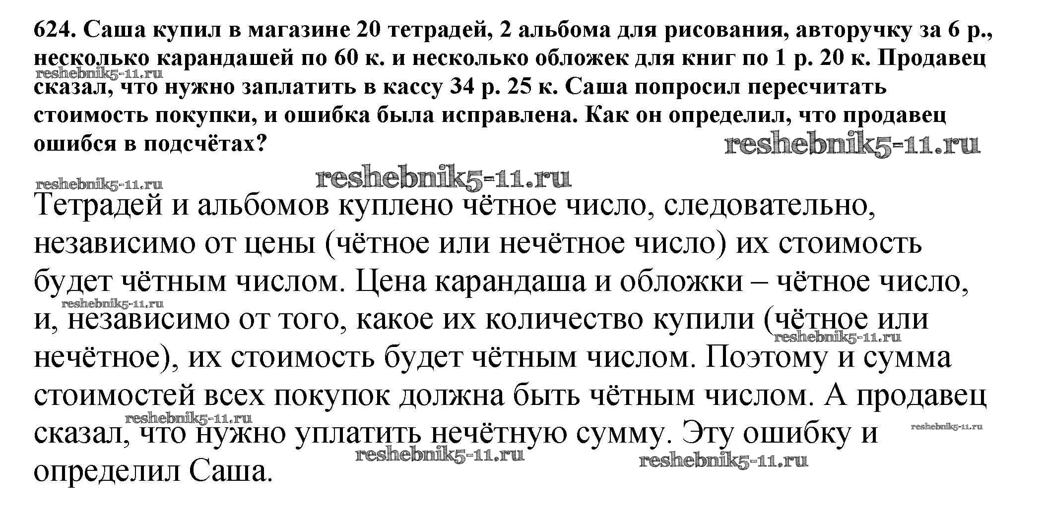 Готовая домашняя работа с ответами по Математике за 5 класс Никольский, Потапов, Решетников, Шевкин Учебник МГУ - школе Просвещение 2016 ФГОС - Упражнения 624