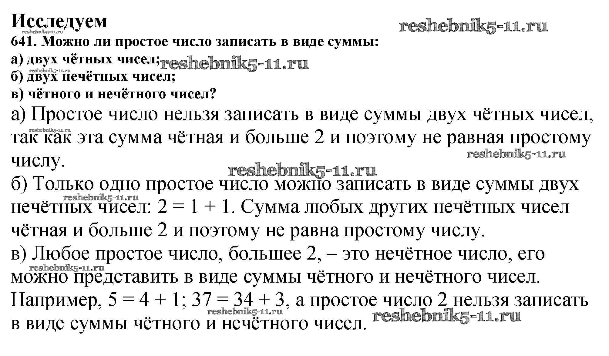 Готовая домашняя работа с ответами по Математике за 5 класс Никольский, Потапов, Решетников, Шевкин Учебник МГУ - школе Просвещение 2016 ФГОС - Упражнения 641