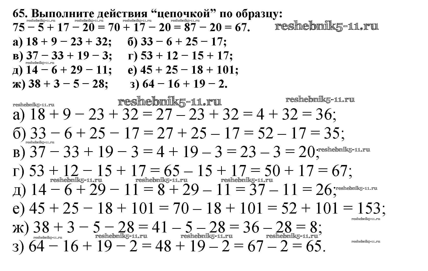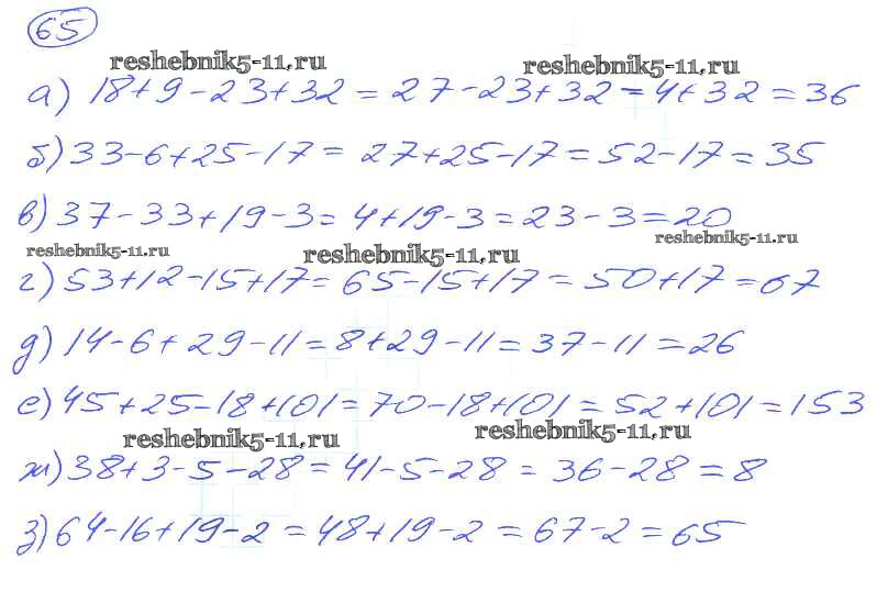 Готовая домашняя работа с ответами по Математике за 5 класс Никольский, Потапов, Решетников, Шевкин Учебник МГУ - школе Просвещение 2016 ФГОС - Упражнения 65