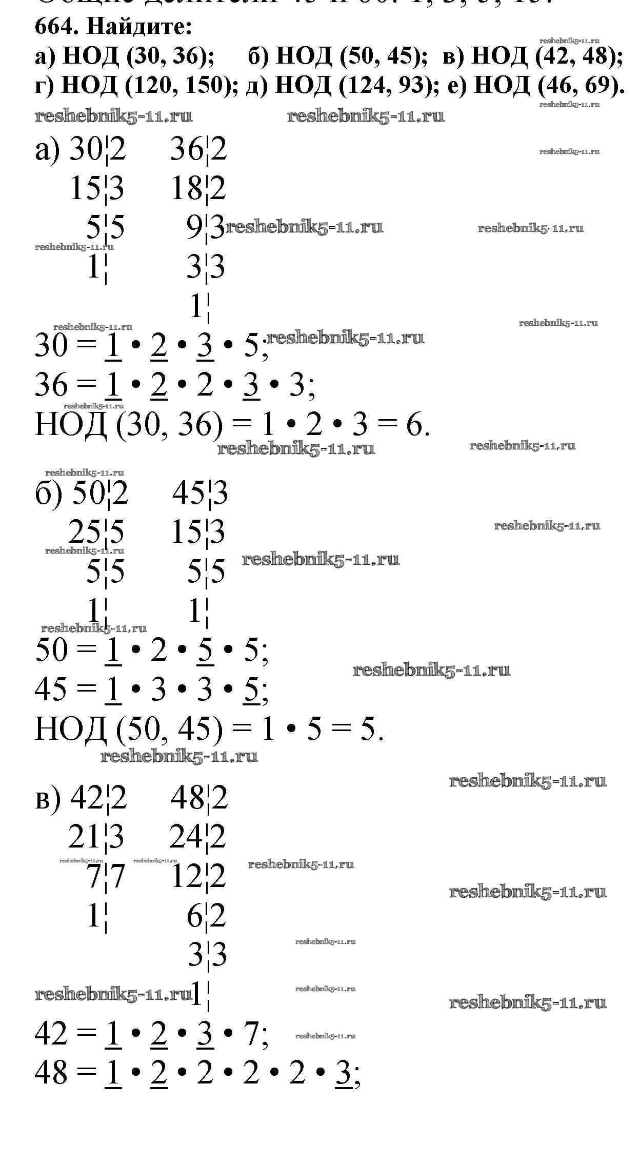 Готовая домашняя работа с ответами по Математике за 5 класс Никольский, Потапов, Решетников, Шевкин Учебник МГУ - школе Просвещение 2016 ФГОС - Упражнения 664