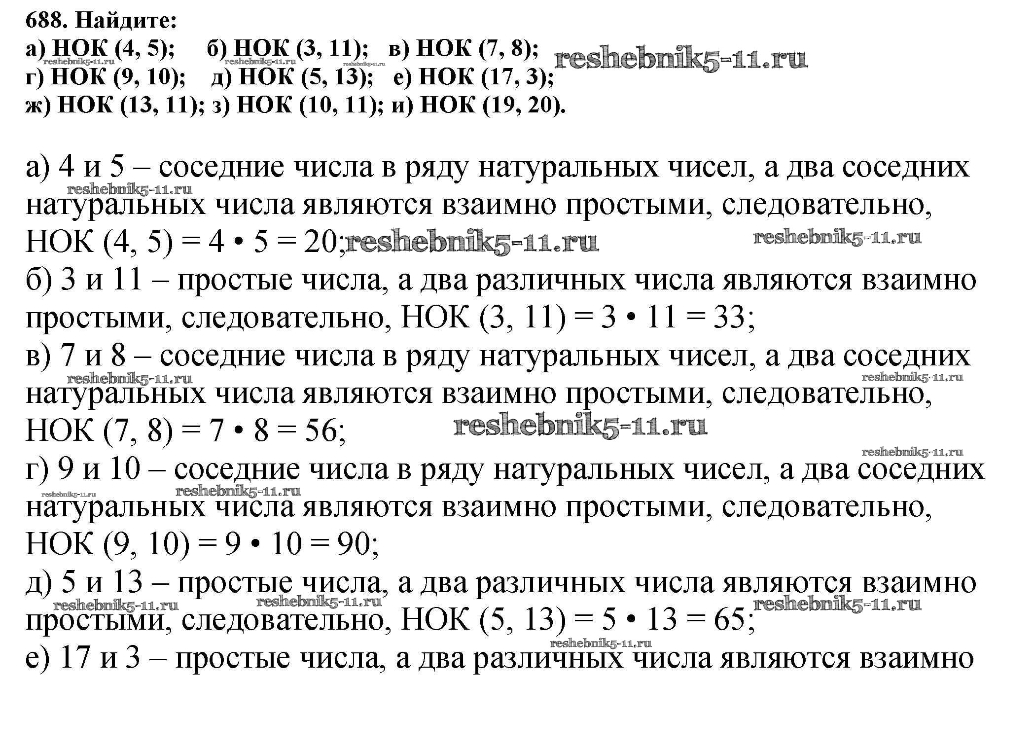 Готовая домашняя работа с ответами по Математике за 5 класс Никольский, Потапов, Решетников, Шевкин Учебник МГУ - школе Просвещение 2016 ФГОС - Упражнения 688