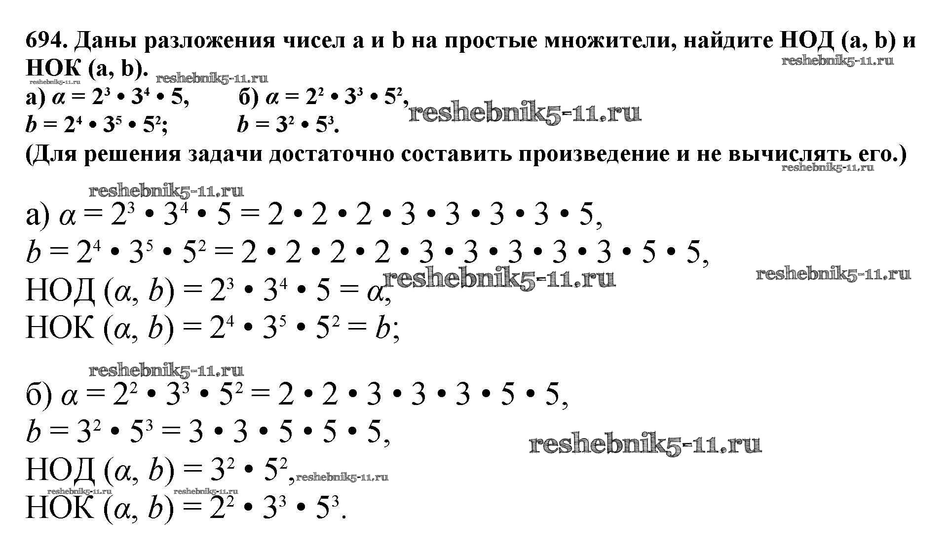 Готовая домашняя работа с ответами по Математике за 5 класс Никольский, Потапов, Решетников, Шевкин Учебник МГУ - школе Просвещение 2016 ФГОС - Упражнения 694