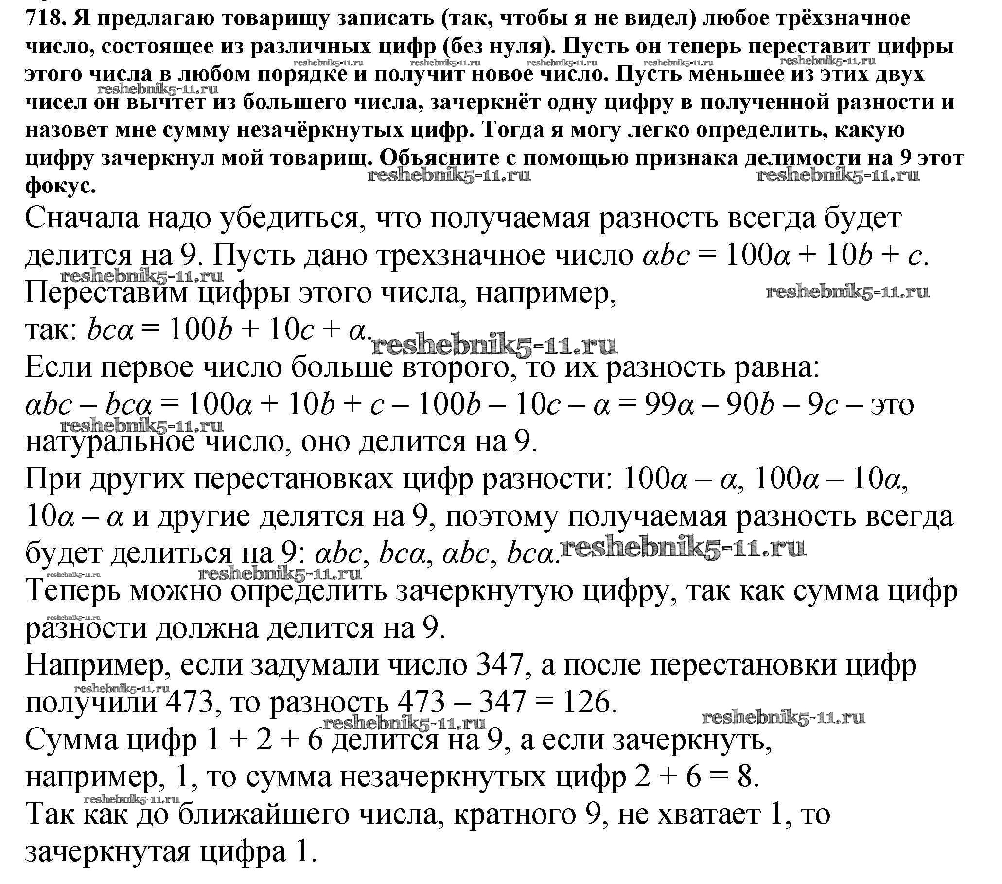 Готовая домашняя работа с ответами по Математике за 5 класс Никольский, Потапов, Решетников, Шевкин Учебник МГУ - школе Просвещение 2016 ФГОС - Упражнения 718