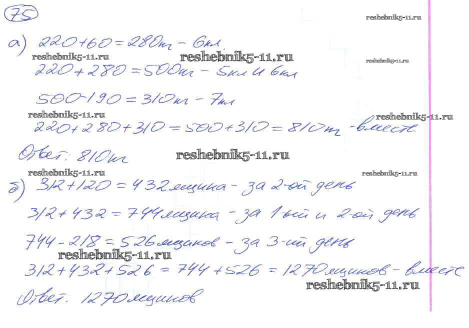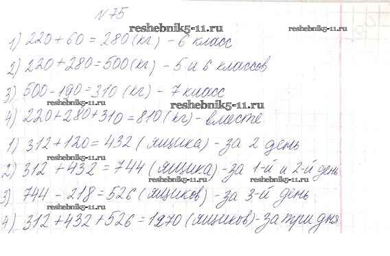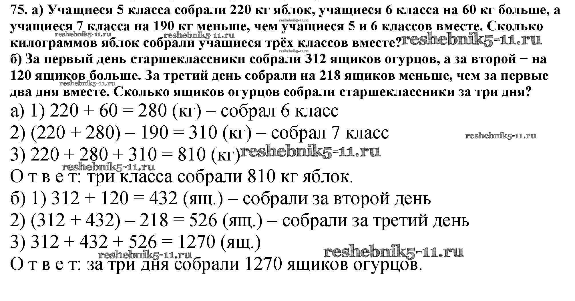 Готовая домашняя работа с ответами по Математике за 5 класс Никольский, Потапов, Решетников, Шевкин Учебник МГУ - школе Просвещение 2016 ФГОС - Упражнения 75
