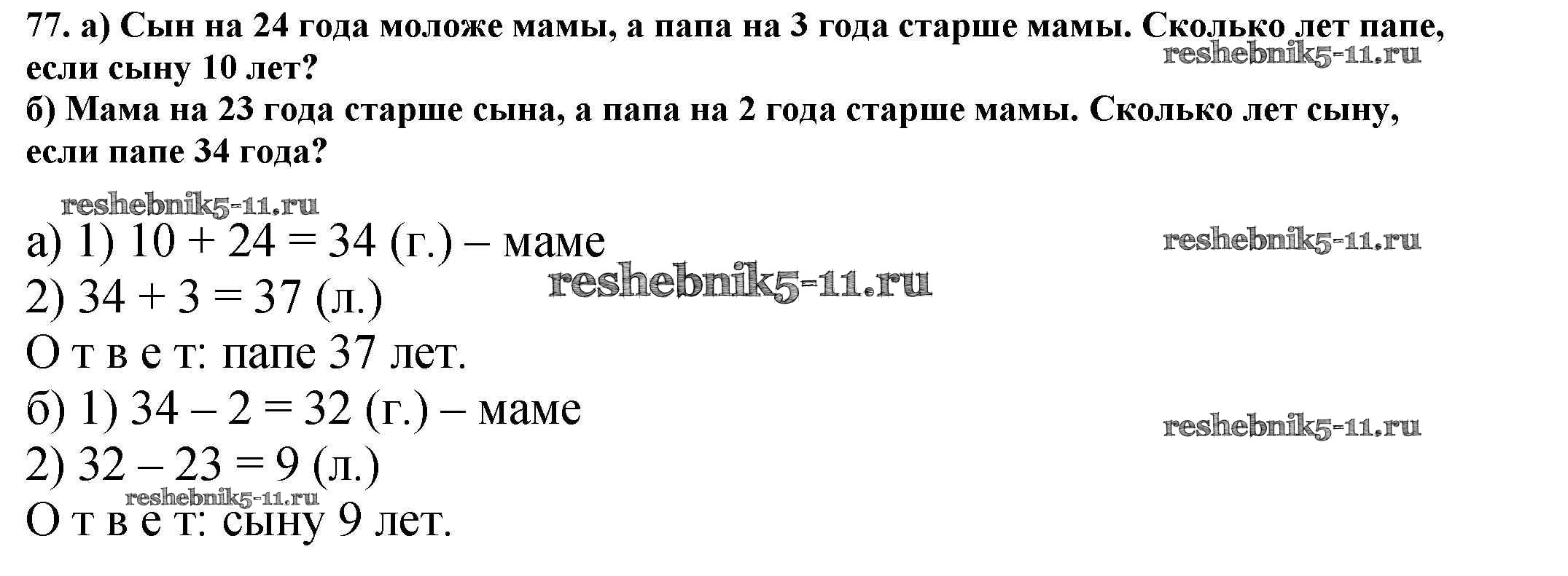 Готовая домашняя работа с ответами по Математике за 5 класс Никольский, Потапов, Решетников, Шевкин Учебник МГУ - школе Просвещение 2016 ФГОС - Упражнения 77
