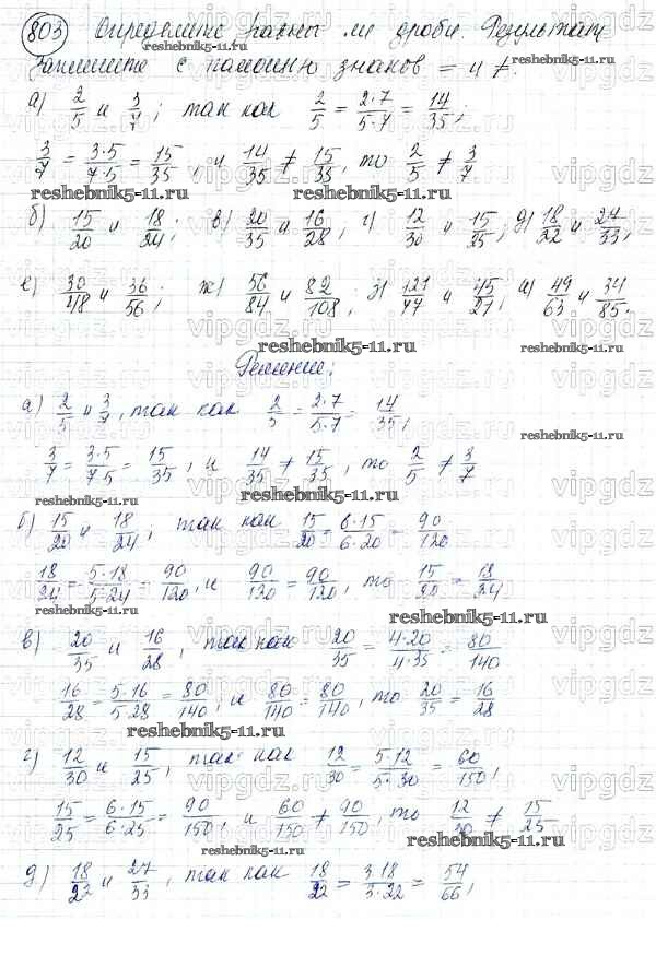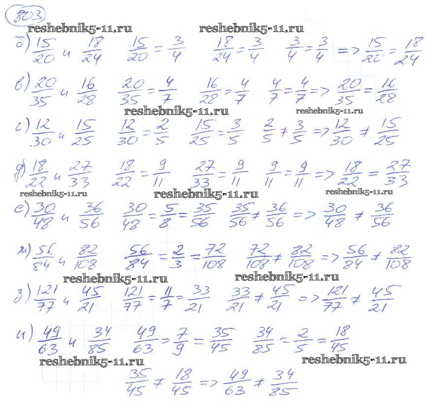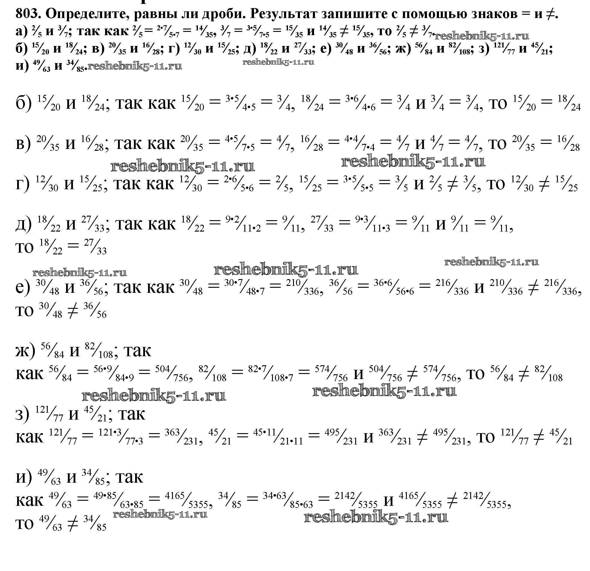 Готовая домашняя работа с ответами по Математике за 5 класс Никольский, Потапов, Решетников, Шевкин Учебник МГУ - школе Просвещение 2016 ФГОС - Упражнения 803