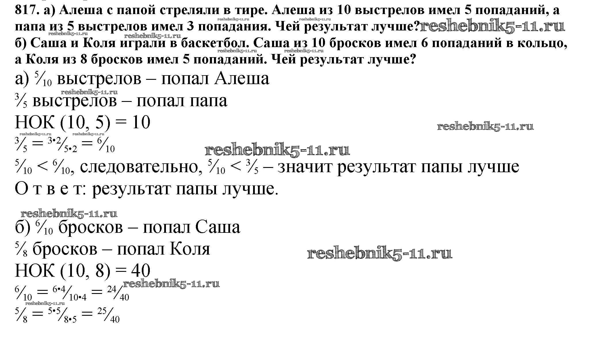 Готовая домашняя работа с ответами по Математике за 5 класс Никольский, Потапов, Решетников, Шевкин Учебник МГУ - школе Просвещение 2016 ФГОС - Упражнения 817