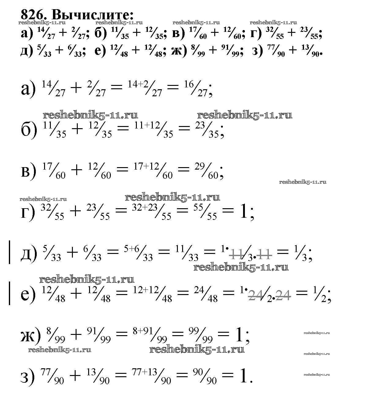 Готовая домашняя работа с ответами по Математике за 5 класс Никольский, Потапов, Решетников, Шевкин Учебник МГУ - школе Просвещение 2016 ФГОС - Упражнения 826