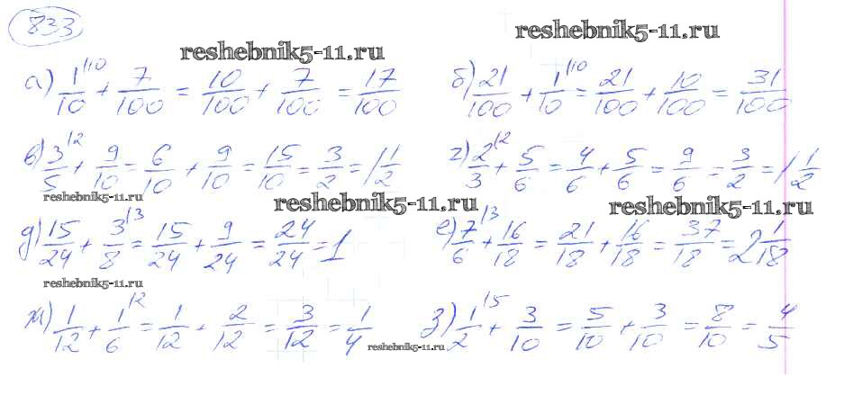Готовая домашняя работа с ответами по Математике за 5 класс Никольский, Потапов, Решетников, Шевкин Учебник МГУ - школе Просвещение 2016 ФГОС - Упражнения 833