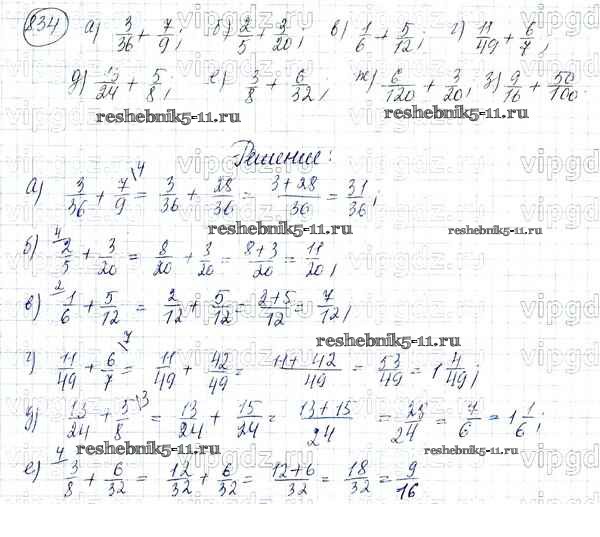 Готовая домашняя работа с ответами по Математике за 5 класс Никольский, Потапов, Решетников, Шевкин Учебник МГУ - школе Просвещение 2016 ФГОС - Упражнения 834