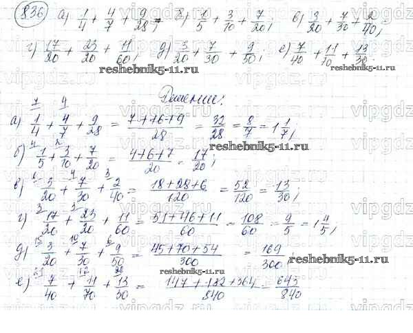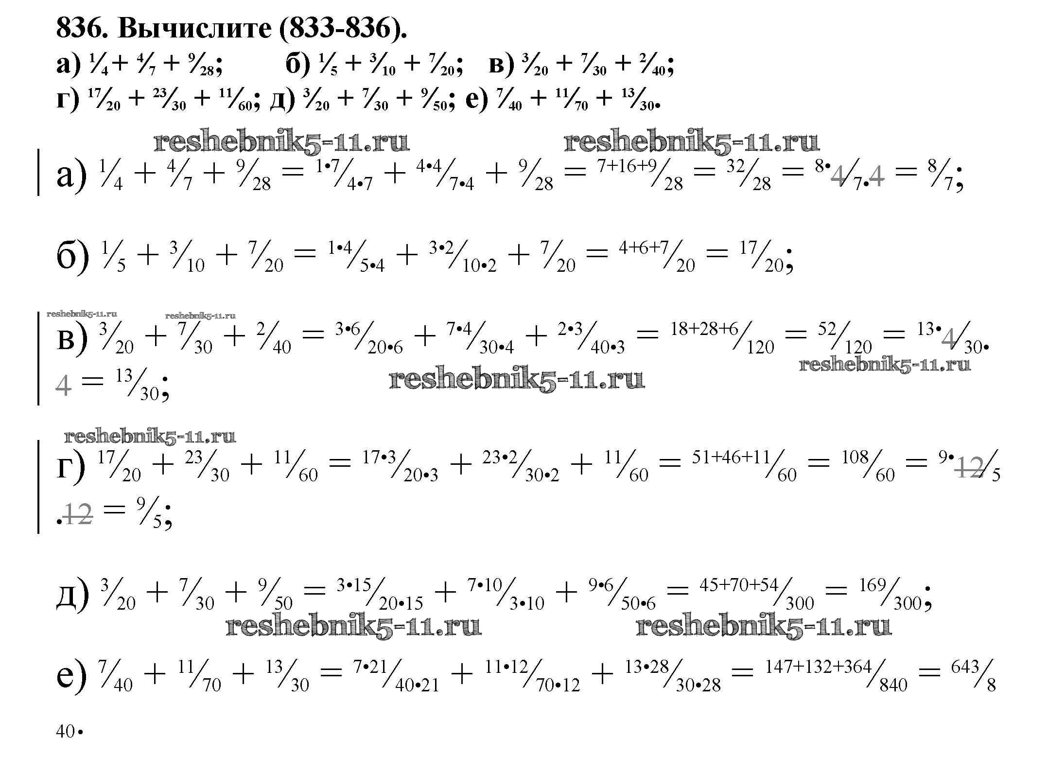 Готовая домашняя работа с ответами по Математике за 5 класс Никольский, Потапов, Решетников, Шевкин Учебник МГУ - школе Просвещение 2016 ФГОС - Упражнения 836