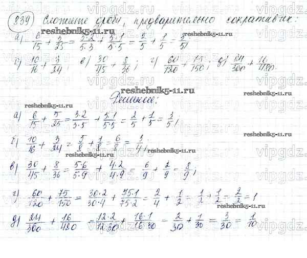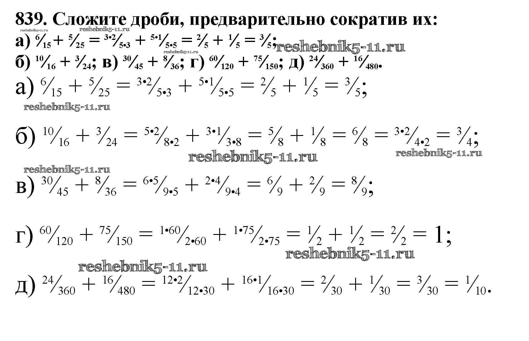 Готовая домашняя работа с ответами по Математике за 5 класс Никольский, Потапов, Решетников, Шевкин Учебник МГУ - школе Просвещение 2016 ФГОС - Упражнения 839