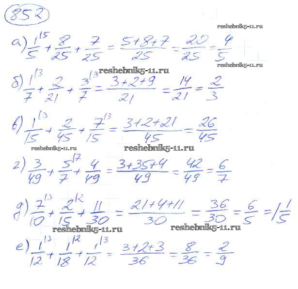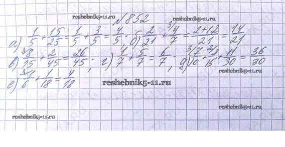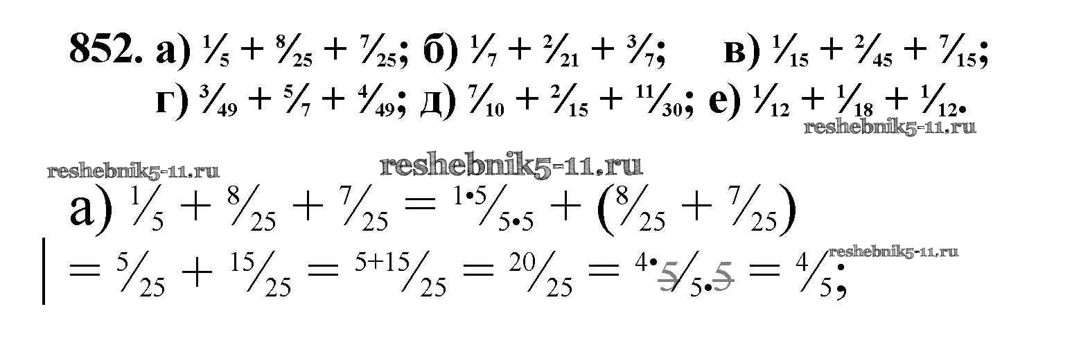 Готовая домашняя работа с ответами по Математике за 5 класс Никольский, Потапов, Решетников, Шевкин Учебник МГУ - школе Просвещение 2016 ФГОС - Упражнения 852