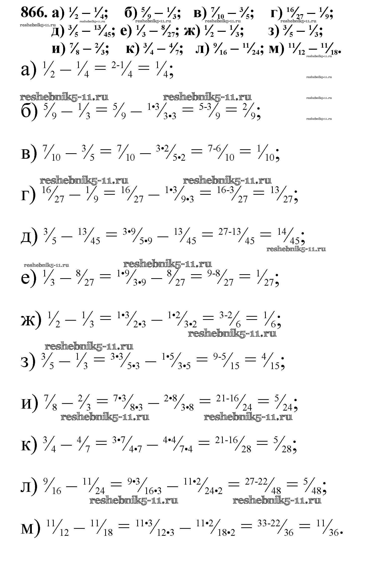 Готовая домашняя работа с ответами по Математике за 5 класс Никольский, Потапов, Решетников, Шевкин Учебник МГУ - школе Просвещение 2016 ФГОС - Упражнения 866