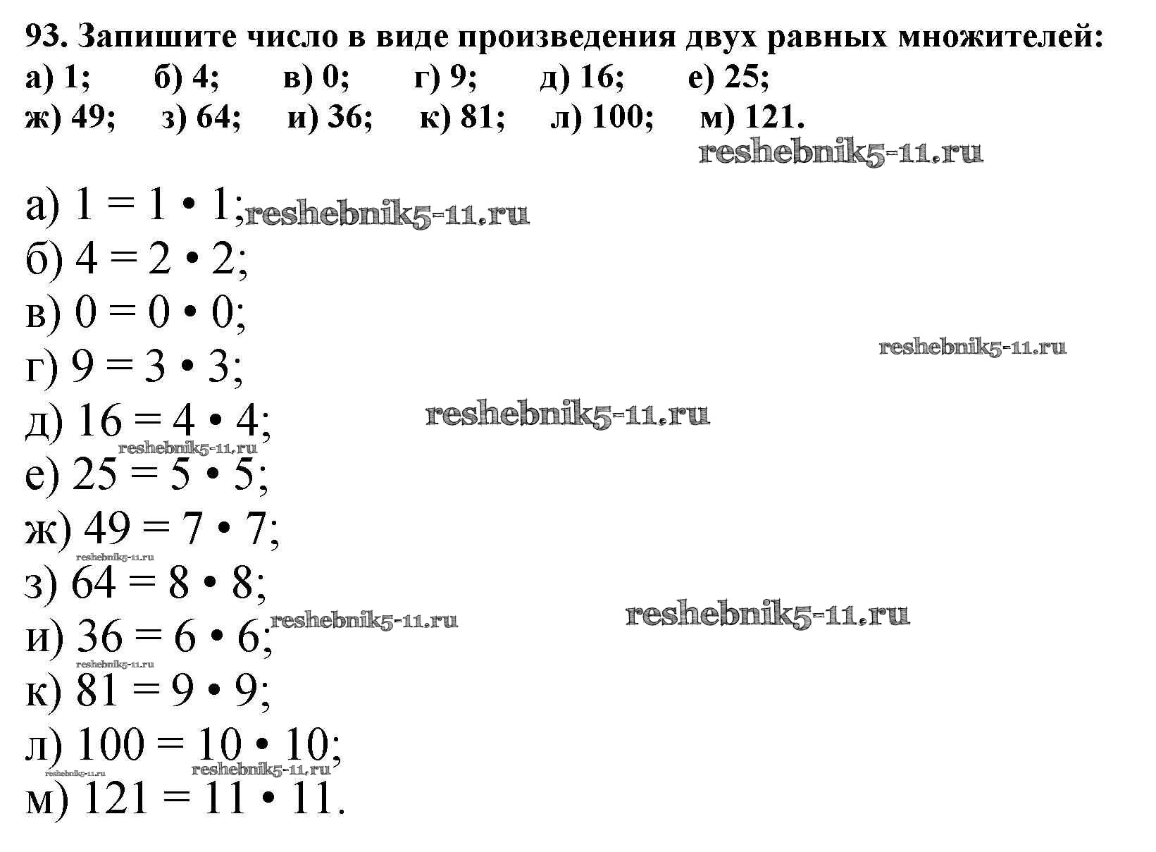 Готовая домашняя работа с ответами по Математике за 5 класс Никольский, Потапов, Решетников, Шевкин Учебник МГУ - школе Просвещение 2016 ФГОС - Упражнения 93