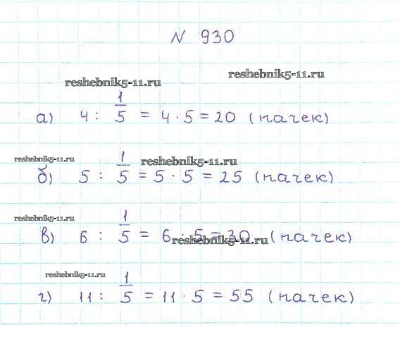 Готовая домашняя работа с ответами по Математике за 5 класс Никольский, Потапов, Решетников, Шевкин Учебник МГУ - школе Просвещение 2016 ФГОС - Упражнения 930