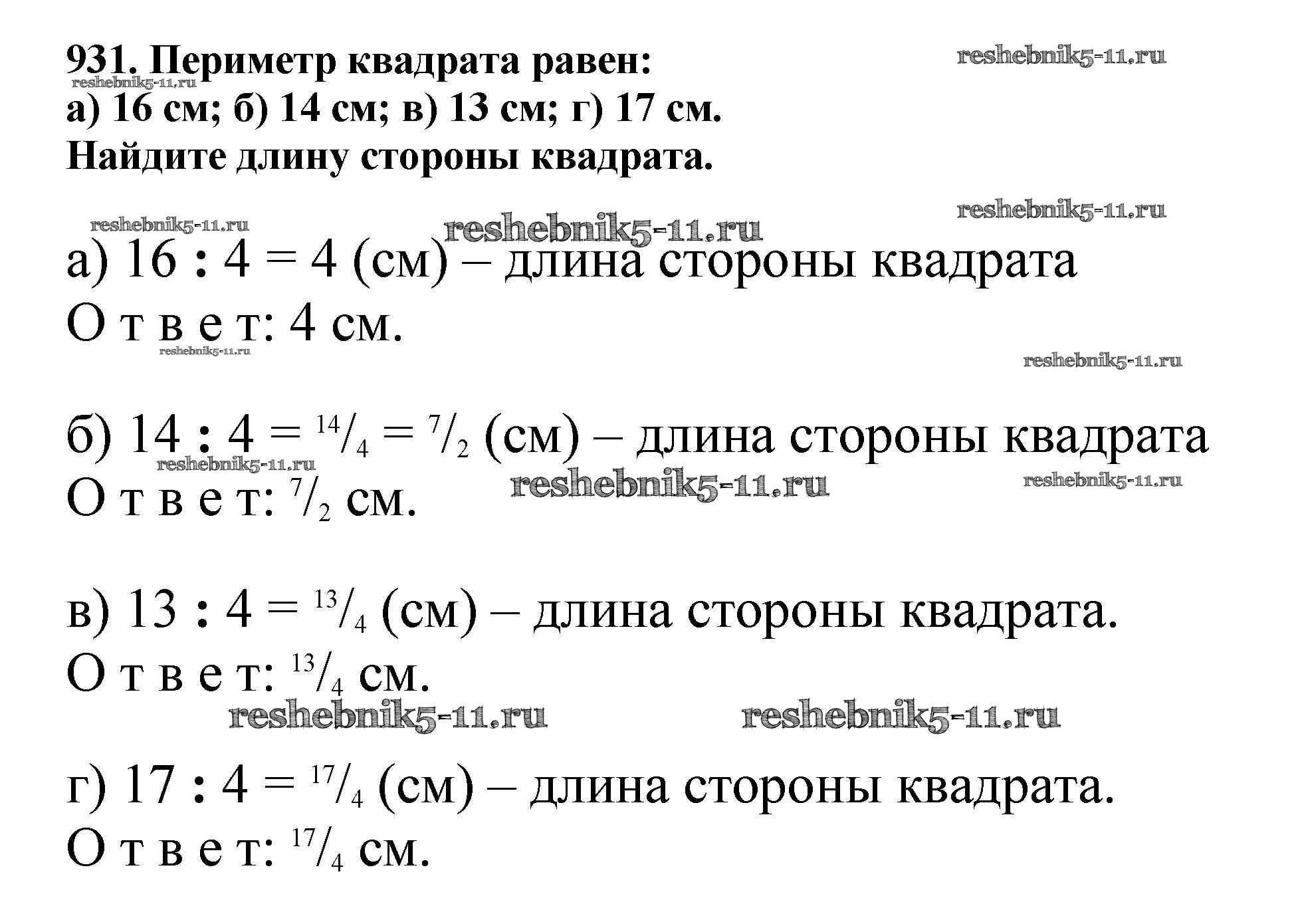 Готовая домашняя работа с ответами по Математике за 5 класс Никольский, Потапов, Решетников, Шевкин Учебник МГУ - школе Просвещение 2016 ФГОС - Упражнения 931