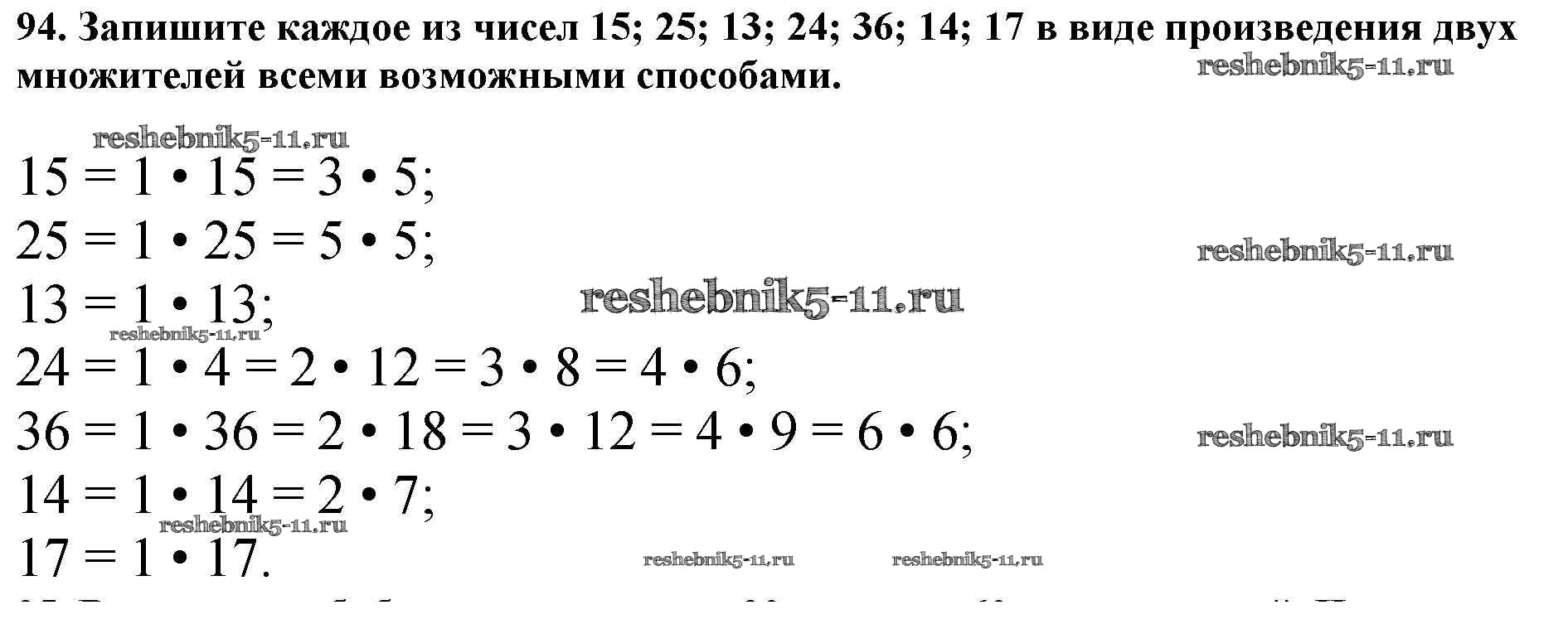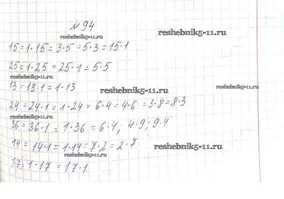 Готовая домашняя работа с ответами по Математике за 5 класс Никольский, Потапов, Решетников, Шевкин Учебник МГУ - школе Просвещение 2016 ФГОС - Упражнения 94