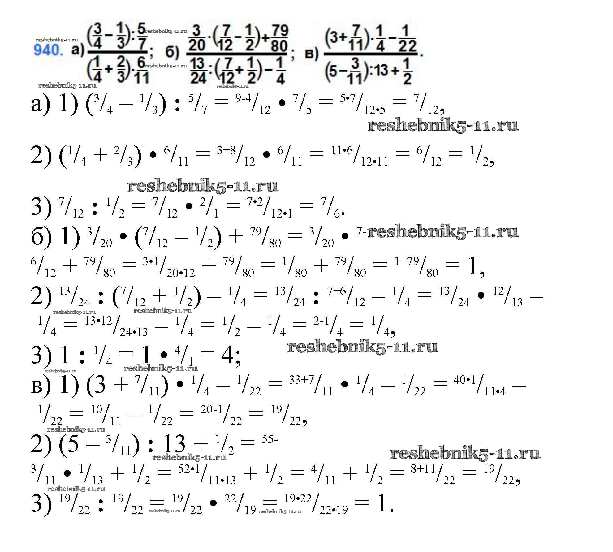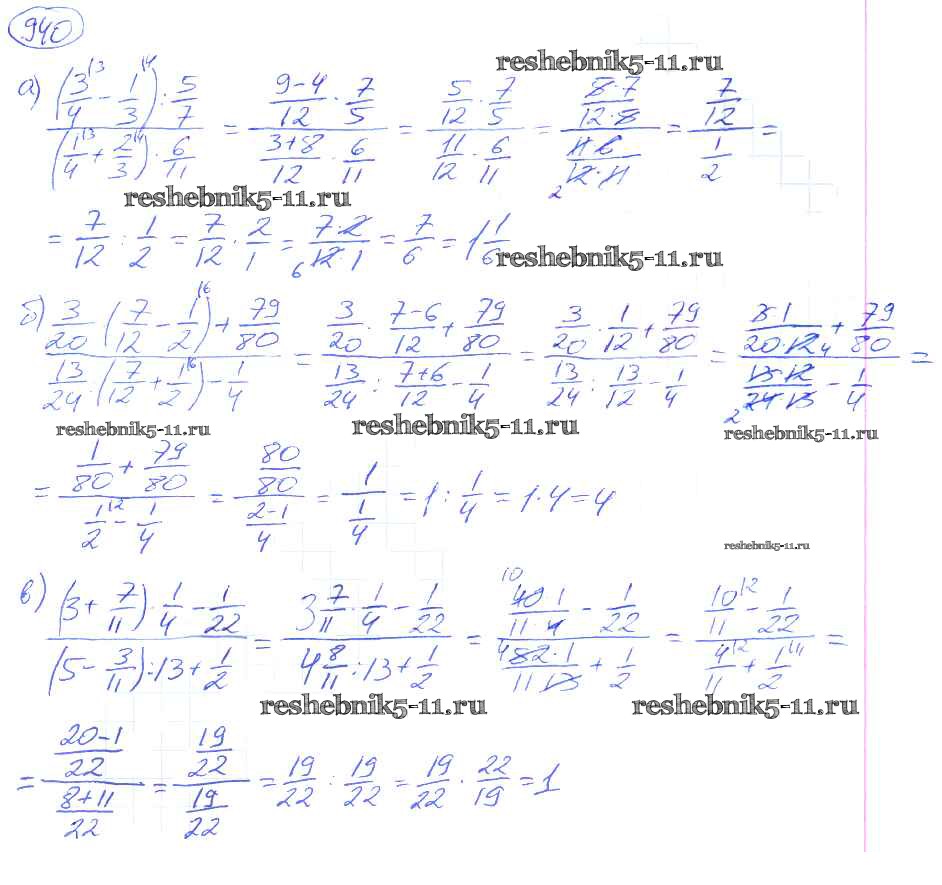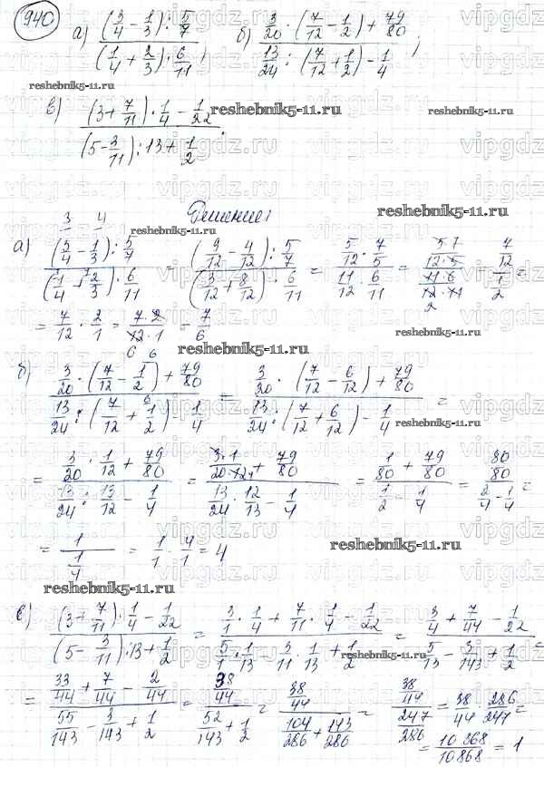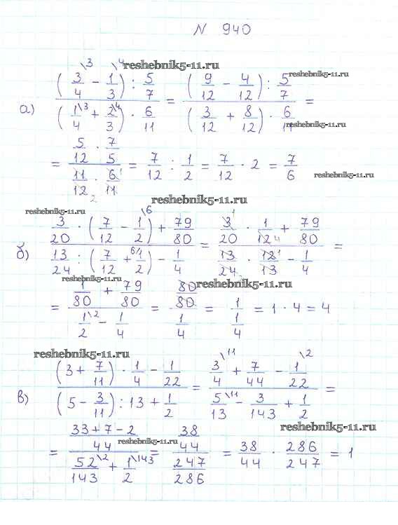 Готовая домашняя работа с ответами по Математике за 5 класс Никольский, Потапов, Решетников, Шевкин Учебник МГУ - школе Просвещение 2016 ФГОС - Упражнения 940